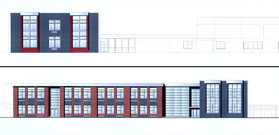 Elementary and Middle Schools, Tarnow, 200,000 SF – urban and architectural design implementing the concept of sustainable clustered classrooms layout with passive solar features.