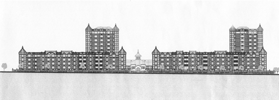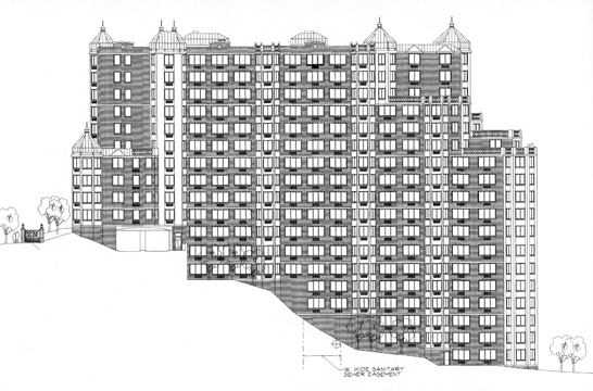 River Club, Yonkers, New York – 440 high-end apartments and condominiums complex, with architecture kin to suburban/resort style gracefully designed at the sloping bank of the Hudson river.