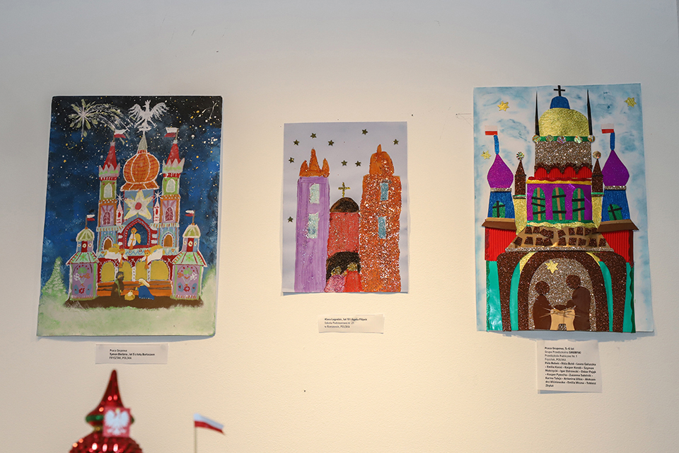 po lewej: 2-D Praca grupowa do 10 lat. 1 miejsce. Szymon Bielizna z Tatą. Uczeń Przedszkola no. 1 w Frysztaku.